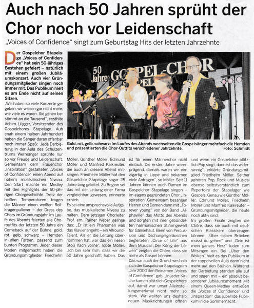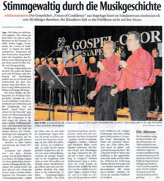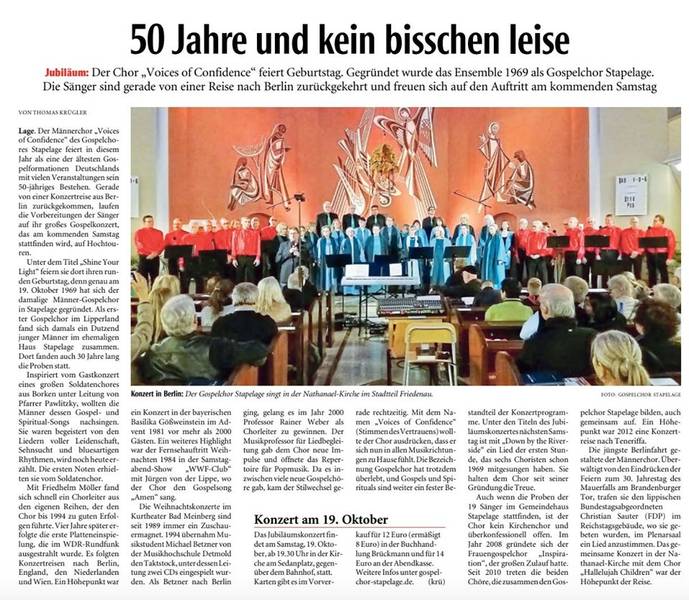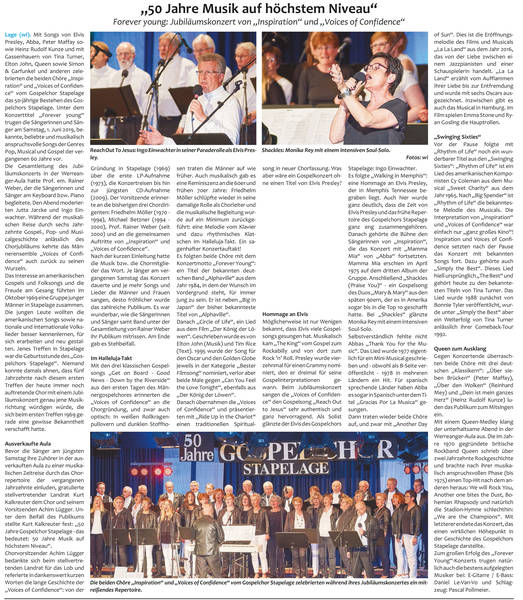 Presseberichte 2019 - 50 Jahre Gospelchor Stapelage