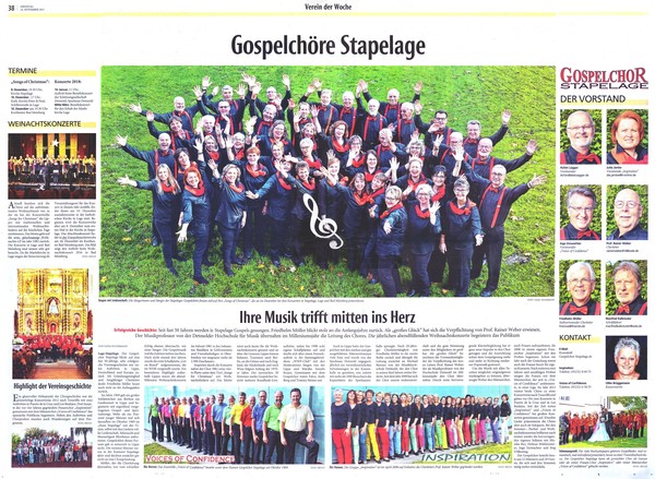2017 - Gospelchor Stapelage ist Verein der Woche in der LZ